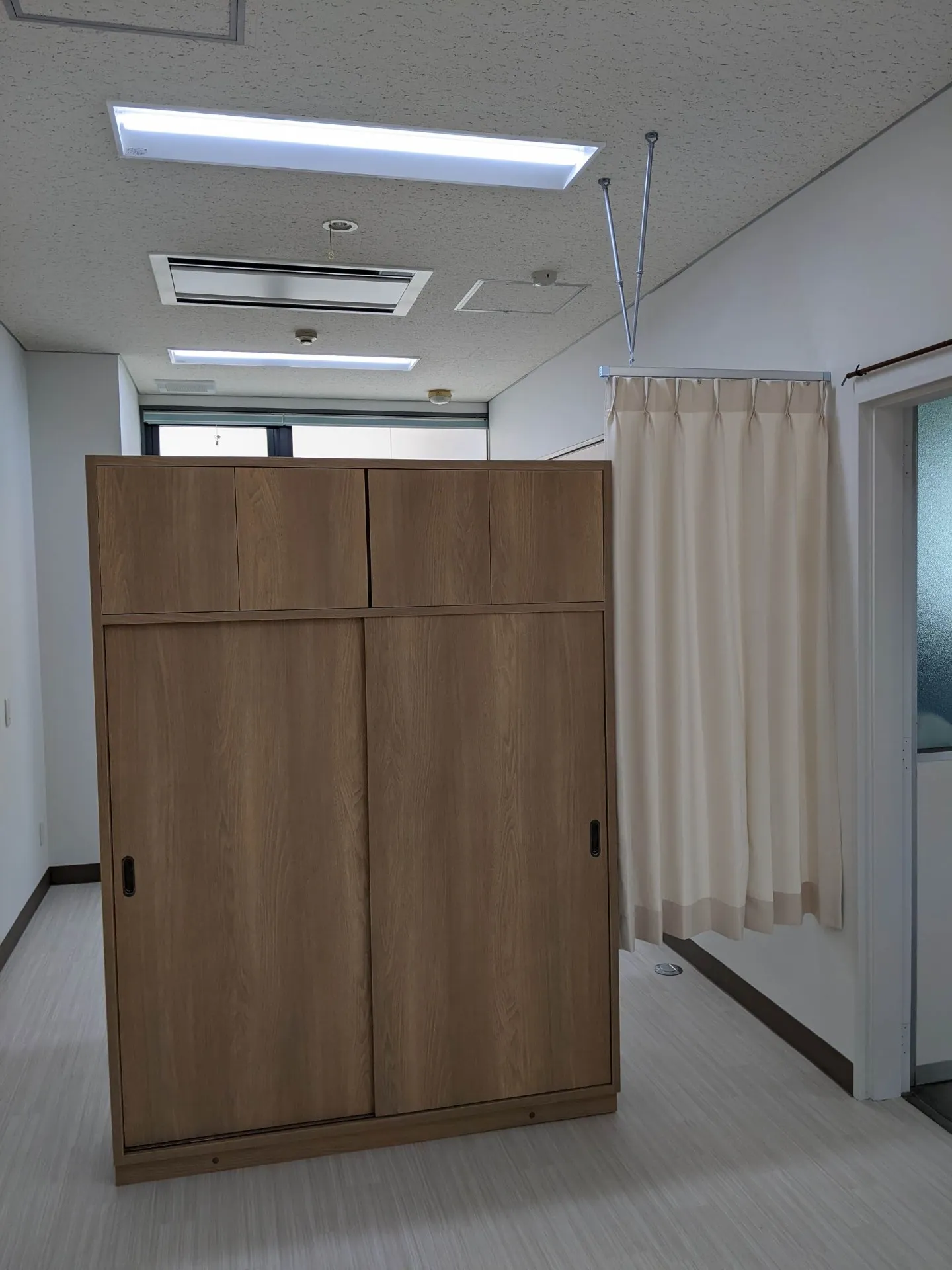 長年地域に根ざしてこられたクリニック様より、さらなる発展を見据えた改装工事のご依頼をいただきました。以前はやや閉鎖的な印象がありましたが、受付カウンターの開放的なデザインや、明るい内装材の採用により、全体的に明るく開放感のある空間へと生まれ変わりました。収納力のある什器も設置し、機能面でもご満足いただいております。患者様・スタッフの皆様にとって、より快適で親しみやすいクリニックとなるよう、細部にまでこだわった施工を行いました。